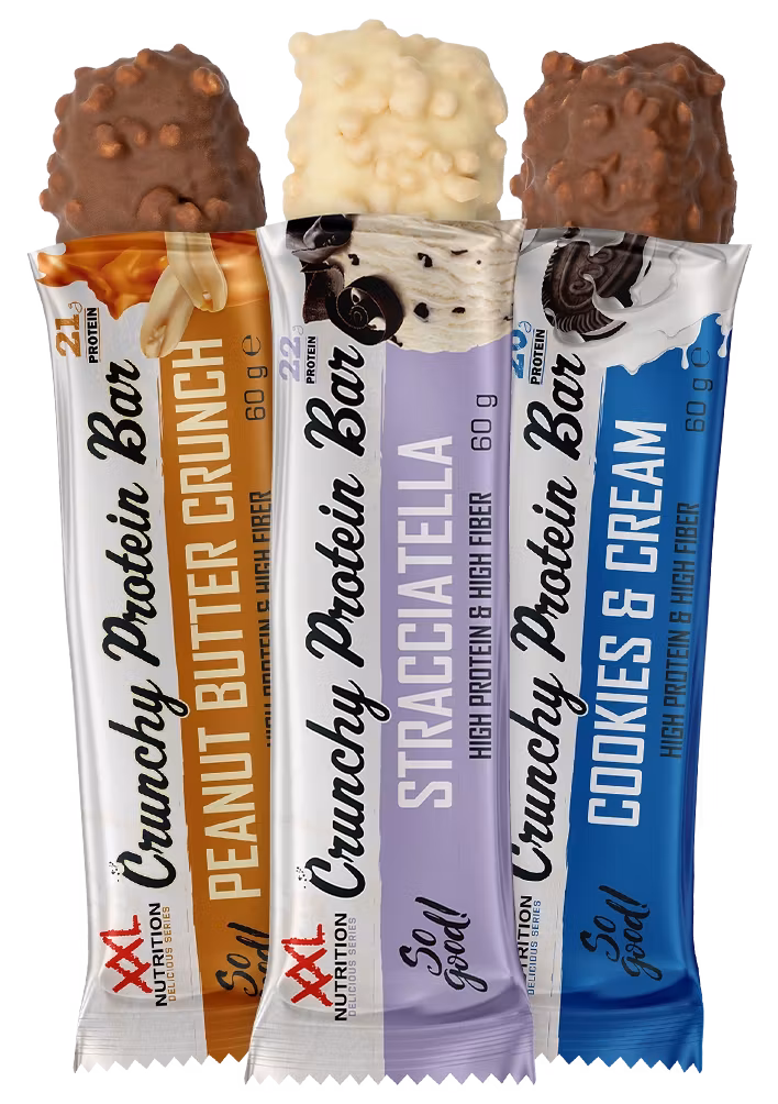 Letar du efter läckra proteinbars med mer än 20 gram protein? Då är Crunchy Protein Bar ett utmärkt val. Du kan köpa denna proteinbar till lägsta pris på XXL Nutrition. Använd den knapriga proteinbaren för att komplettera en varierad och balanserad kost.